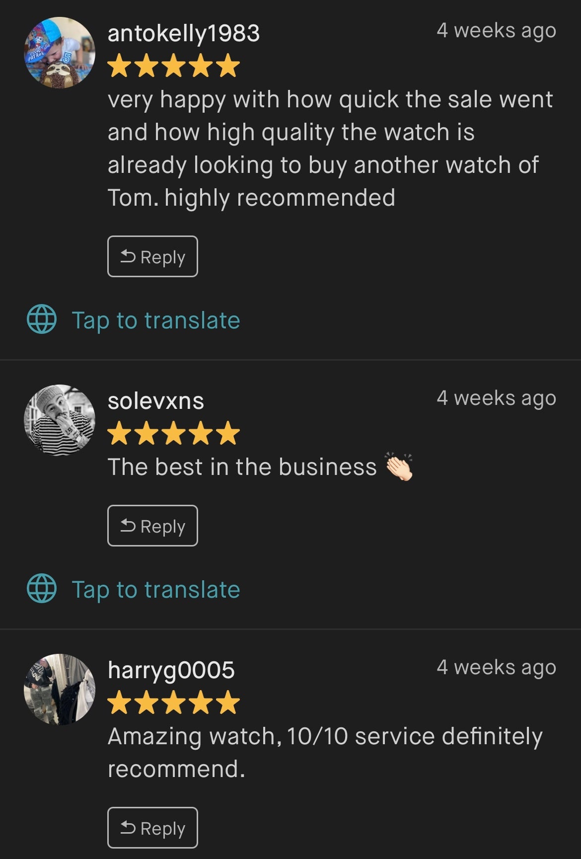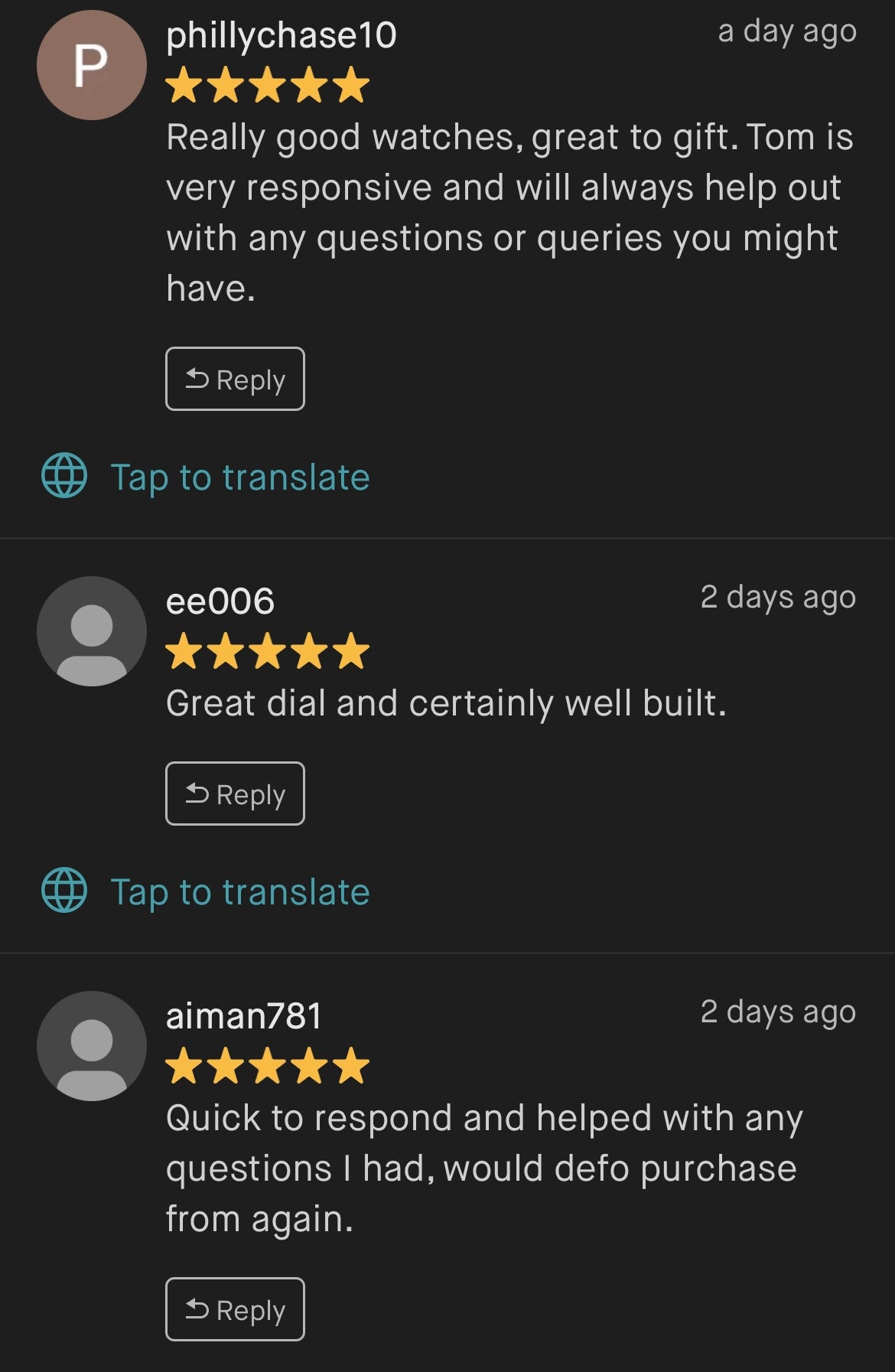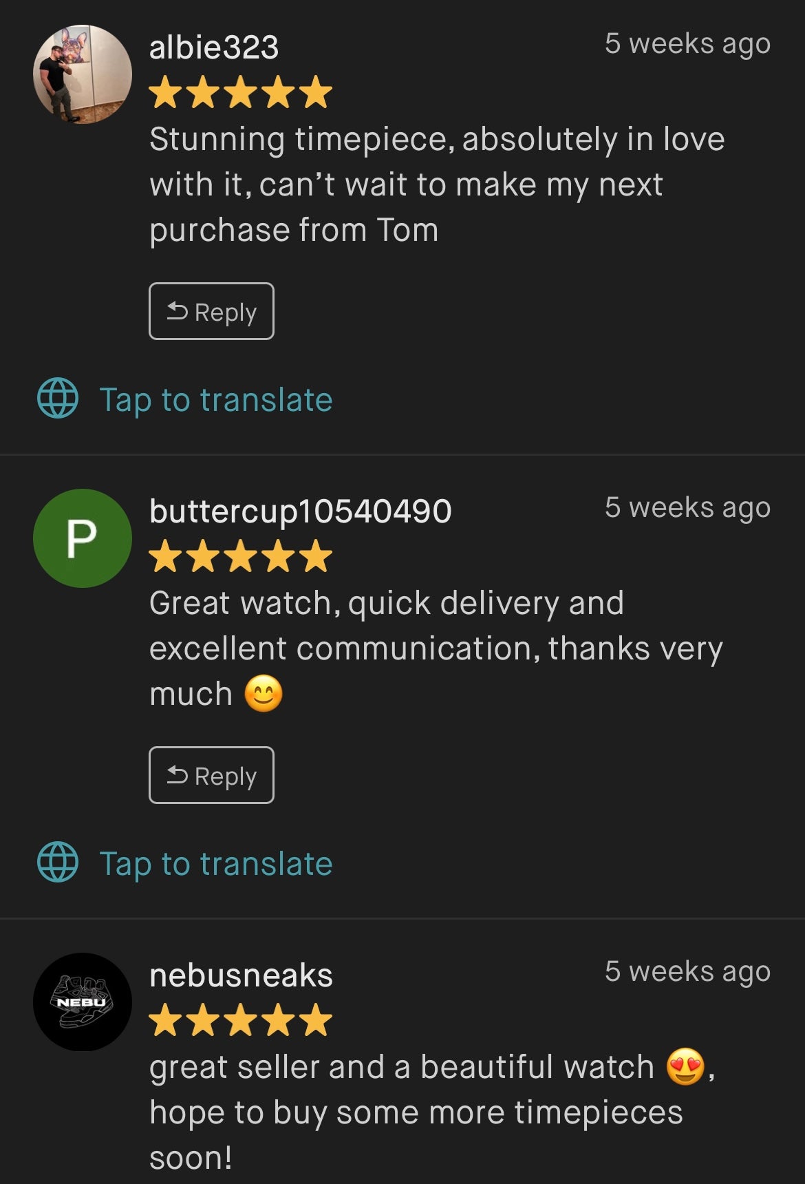 “Amazing! Great watch, fantastic price, great communication and incredibly fast delivery! Thanks again!”